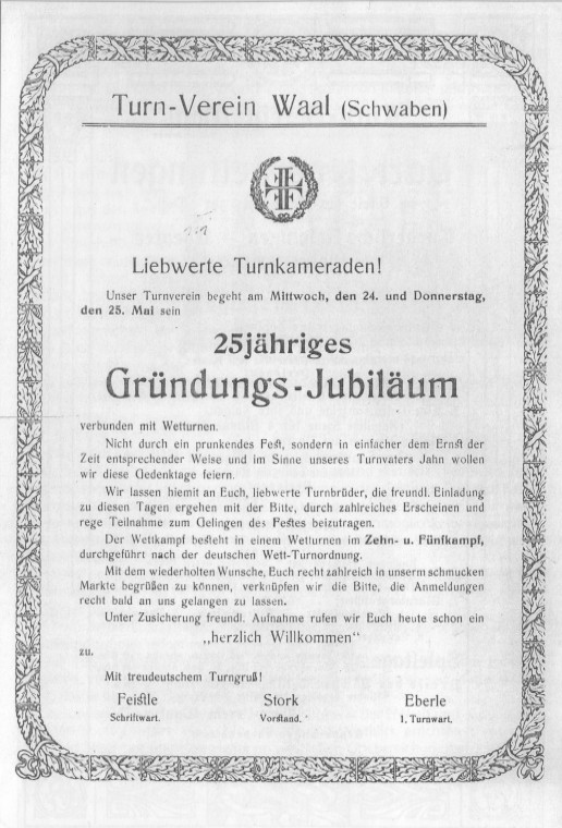 und Hans Heim den TV Waal vertraten. Bei den Gauturnfesten 1929 und 1930 wurde